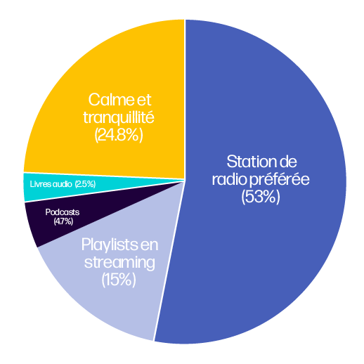 La majorité (53 %) des livreurs aiment écouter leur station de radio préférée, tandis que 15 % préfèrent jouer les DJ en écoutant des playlists. D’autres encore optent pour les podcasts (4,7 %) et les livres audio (2,5 %).